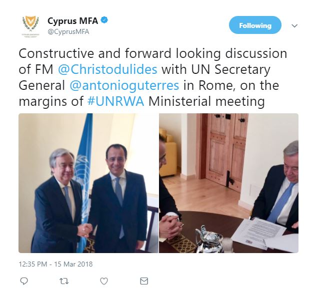 ΔΙΑΒΑΣΤΕ ΕΠΙΣΗΣ: Στη Ρώμη ο Χριστοδουλίδης - Τα δεκαπέντε λεπτά του Γκουτέρες