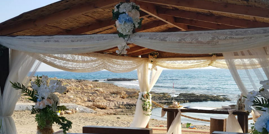 Με λιγοστούς καλεσμένους, σε ένα κιόσκι και με φόντο την θάλασσα τελέστηκε το μυστήριο.