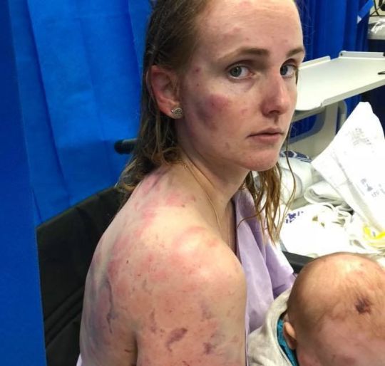 Τότε η νεαρή μητέρα, σταμάτησε άμεσα το όχημα της και πήγε στο πίσω κάθισμα, όπου πήρε στην αγκαλιά της το μωρό που ούρλιαζε για να το προφυλάξει από το χαλάζι.