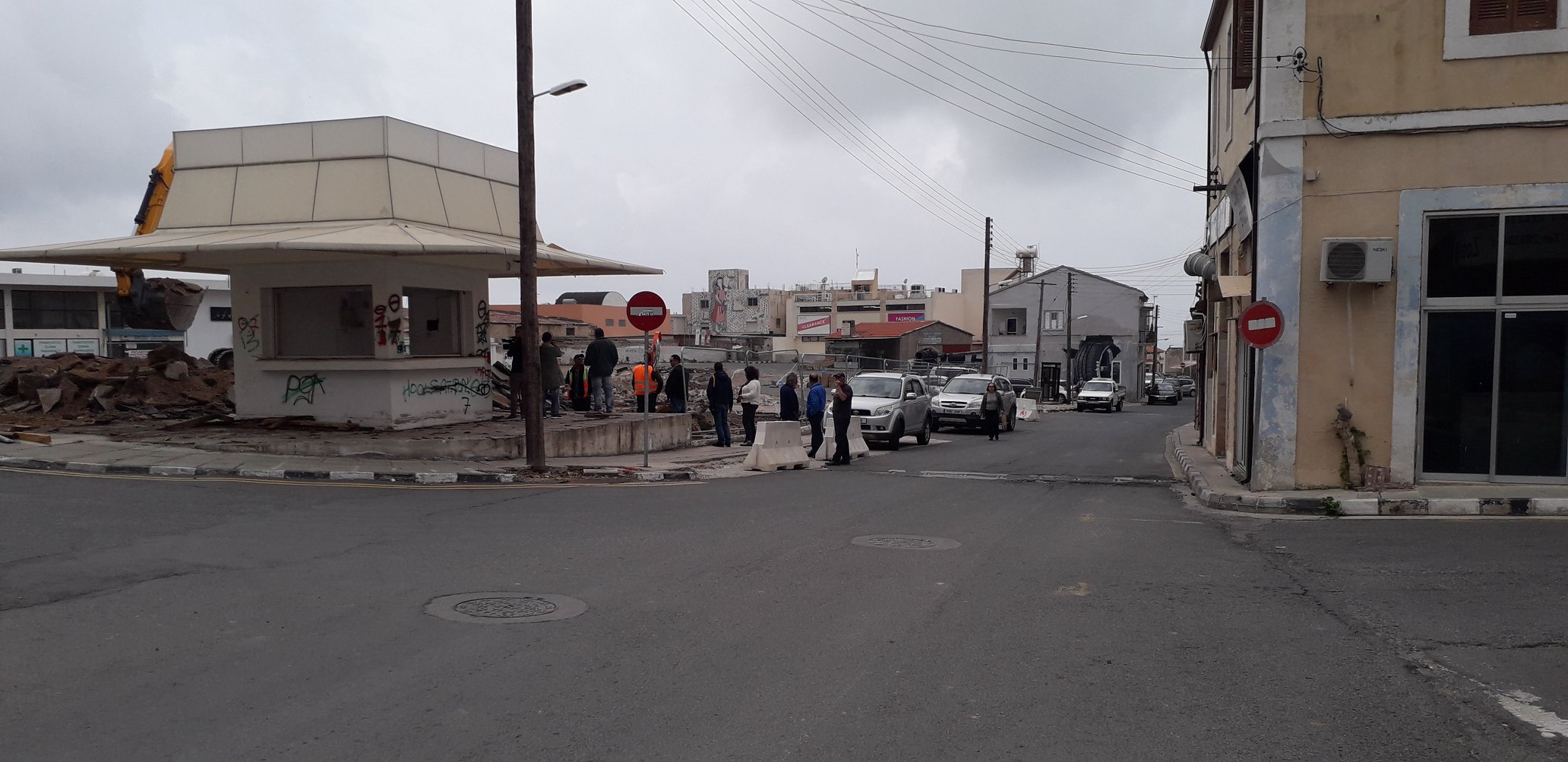 Ο Δήμαρχος Πάφου ανέβηκε το πρωί της Τρίτης (9/4) σε εκσκαφέα και κατεδάφισε περίπτερο που βρισκόταν στον παλιό χώρο στάθμευσης σηματοδοτώντας την έναρξη των εργασιών.