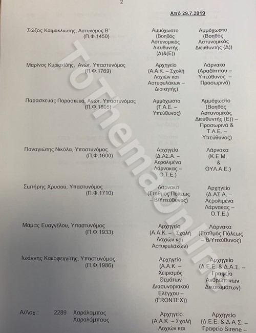 ΣΧΕΤΙΚΟ ΑΡΘΡΟ: ΑΣΤΥΝΟΜΙΑ ΚΥΠΡΟΥ: 42 νέες μεταθέσεις – Τα πόστα 10 μελών της φρουράς Χριστόφια –ΠΙΝΑΚΕΣ
