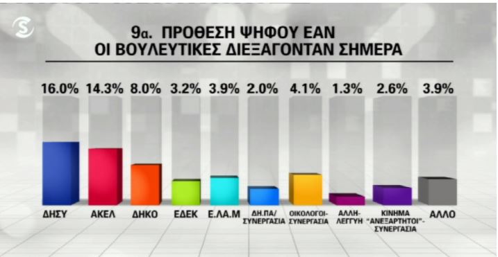 Αξίζει να σημειωθεί ότι 18,4% των ερωτηθέντων δήλωσαν αναποφάσιστοι και ποσοστό 9,5% δεν θέλησαν να απαντήσουν.