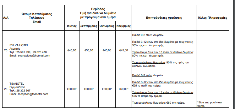 Στον κατάλογο που έχει αναρτηθεί μπορείτε να εντοπίσετε 171 ξενοδοχειακές μονάδες και καταλύματα που υπάγονται στο εν λόγω σχέδιο που έχει ισχύ ολόκληρο τον Ιούνιο, αλλά και Σεπτέμβριο, Οκτώβριο φτάνοντας μέχρι το τέλος Νοεμβρίου. Μπορεί αρχικά να παρατηρήσετε μελετώντας πως αριθμός ξενοδοχείων εξαιρούν από τις επιλογές το τριήμερο του Αγίου Πνεύματος (συγκεκριμένα 50 εξ’αυτών) όμως υπάρχουν ακόμη 121 επιλογές για όσους ακόμη ψάχνουν την... παραλιακή εξόρμηση τους.