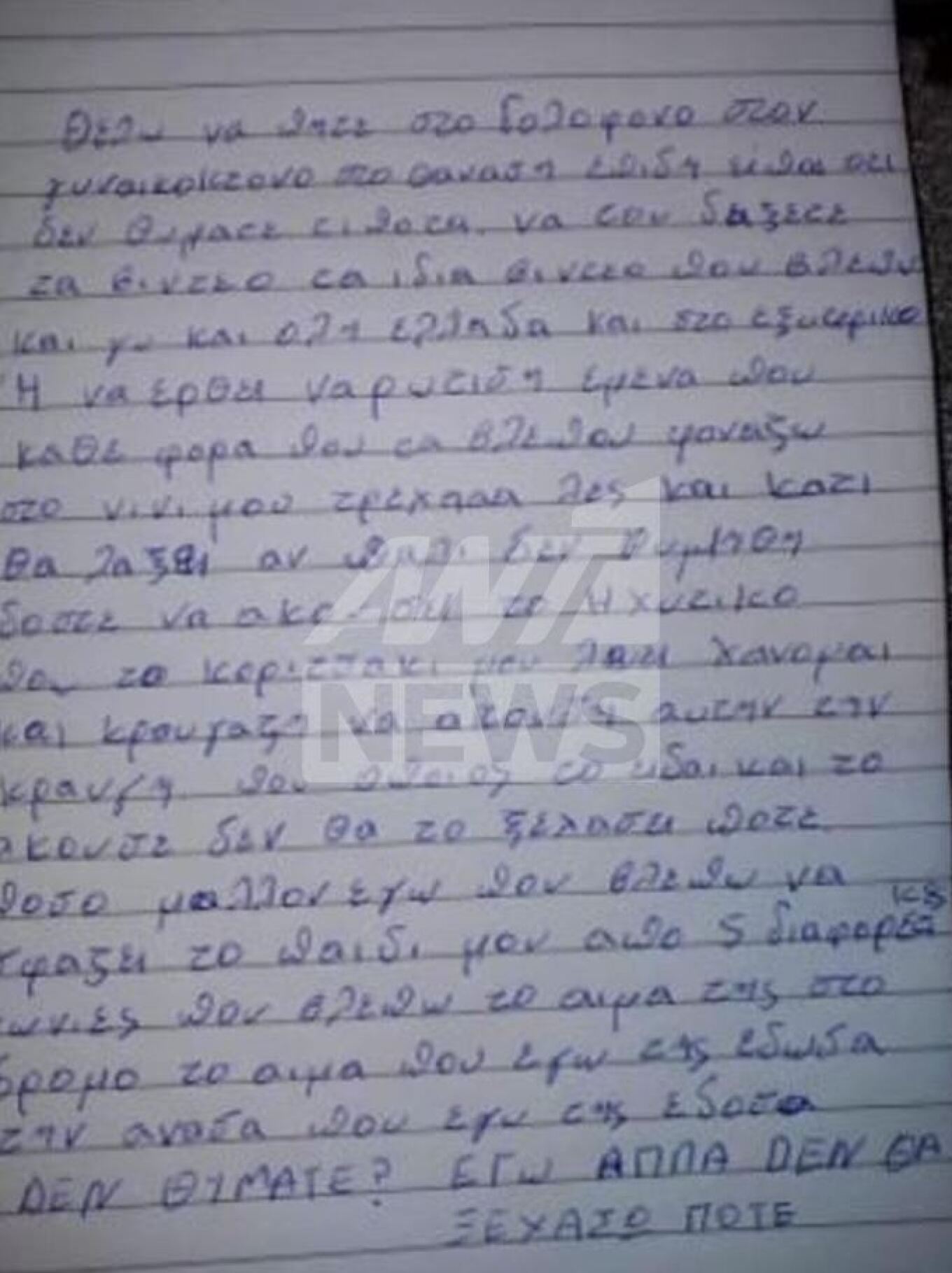 Σε ένα χαρτί έγραψε όλα όσα ήθελε να του πει, μετά τον ισχυρισμό του δράστη στον εισαγγελικό ψυχιατρικό πραγματογνώμονα ότι δεν θυμάται τίποτα από τον φόνο που διέπραξε.