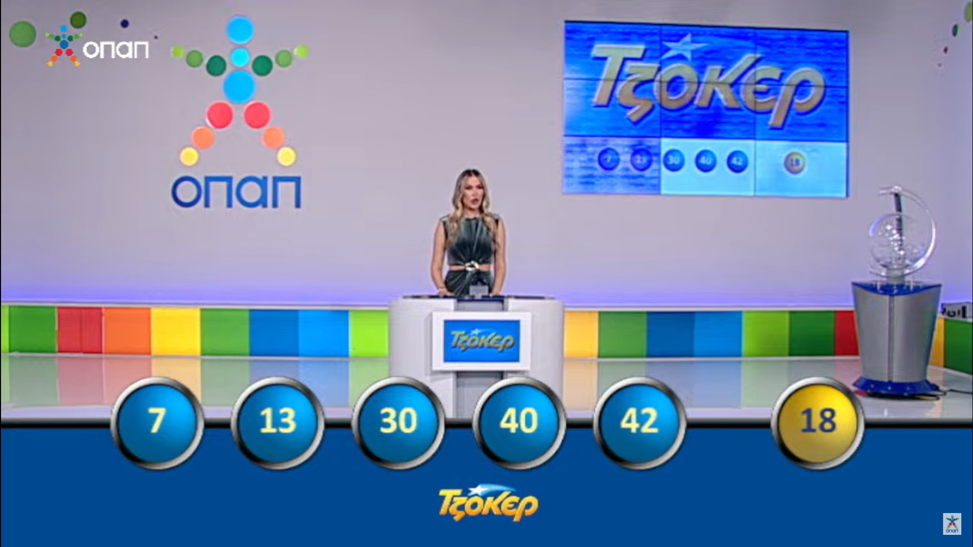 Οι τυχεροί αριθμοί είναι: 42, 13, 7, 40, 30 και τζόκερ το 18.