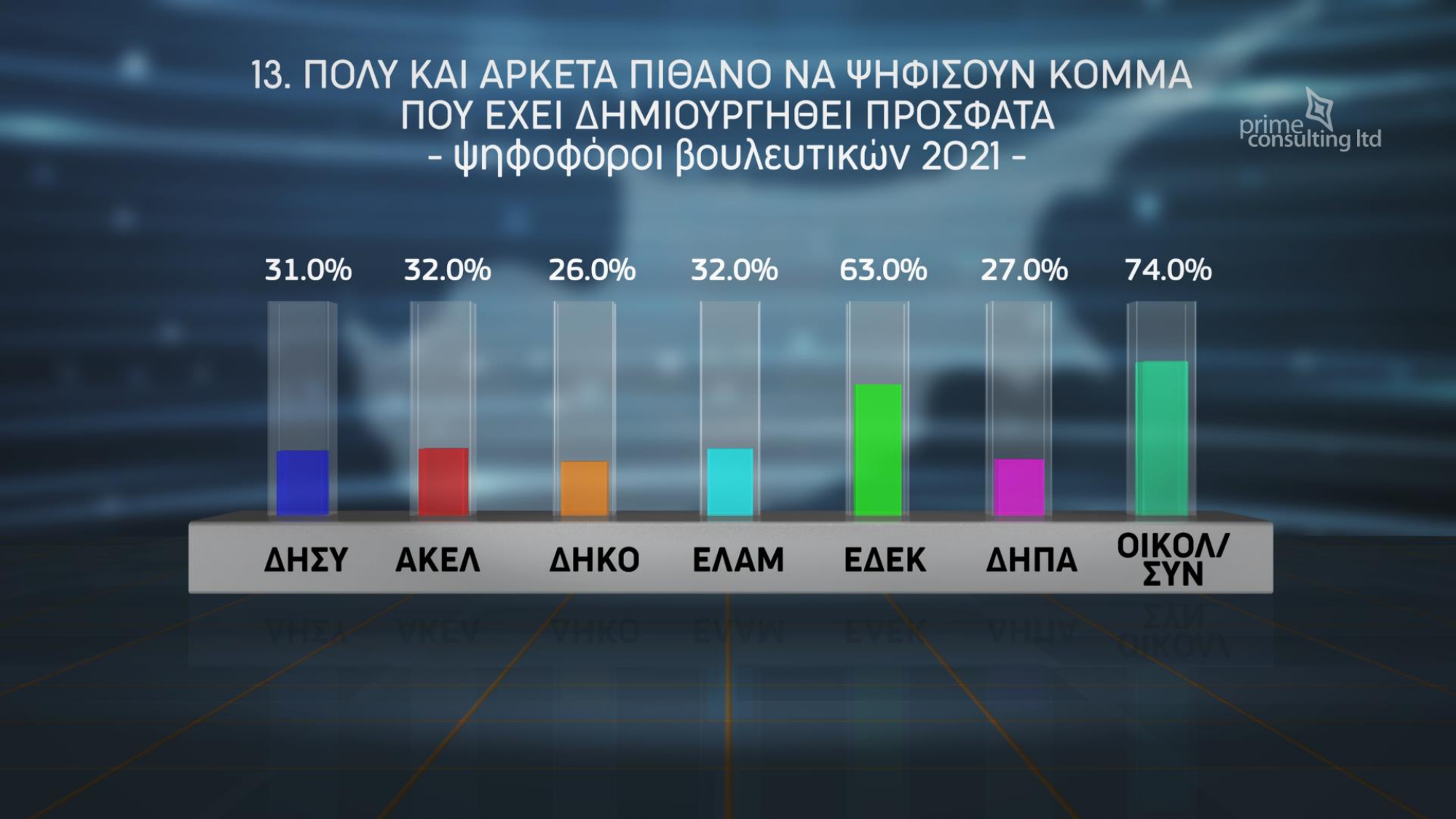 Πάντως, σύμφωνα με τη δημοσκόπηση, τα νέα κόμματα είναι πολύ πιο πιθανόν να προσελκύσουν ψηφοφόρους από ΕΔΕΚ και Κίνημα Οικολόγων-Συνεργασία Πολιτών.