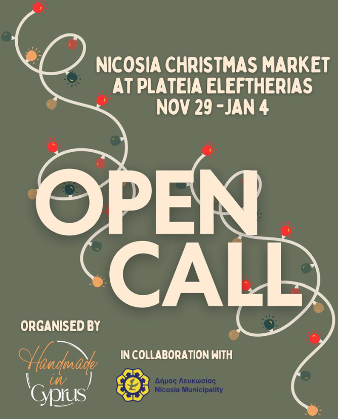 Από τις 29 Νοεμβρίου 2025 – 4 Ιανουαρίου 2026 στην Πλατεία Ελευθερίας (στεγασμένος χώρος, ισόγειο), θα ανοίξει και η επίσημη Χριστουγεννιάτικη Αγορά Λευκωσίας του Δήμου Λευκωσίας από το Handmade in Cyprus!