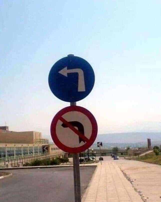 Συγκεκριμένα, σύμφωνα με ανάρτηση στη σελίδα «Cy Police Checkpoints», μια ταμπέλα παροτρύνει από την μια στον οδηγό να στρίψει αριστερά και από την άλλη ότι… απαγορεύεται το στρίψιμο στα αριστερά.