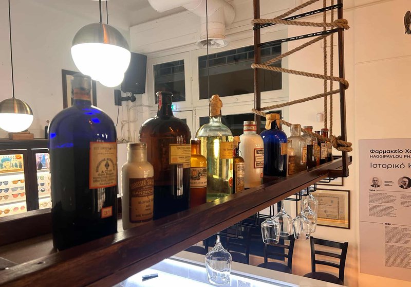 Τιμώντας την ιστορία του, ο χώρος διατήρησε το όνομά του και πολλά από τα παλιά του αντικείμενα — ιατρικά εργαλεία, γυάλινα μπουκαλάκια με φάρμακα και σπάνια γυαλιά — που σήμερα λειτουργούν ως μοναδικά διακοσμητικά στοιχεία, αναδεικνύοντας την αυθεντική του ταυτότητα.
