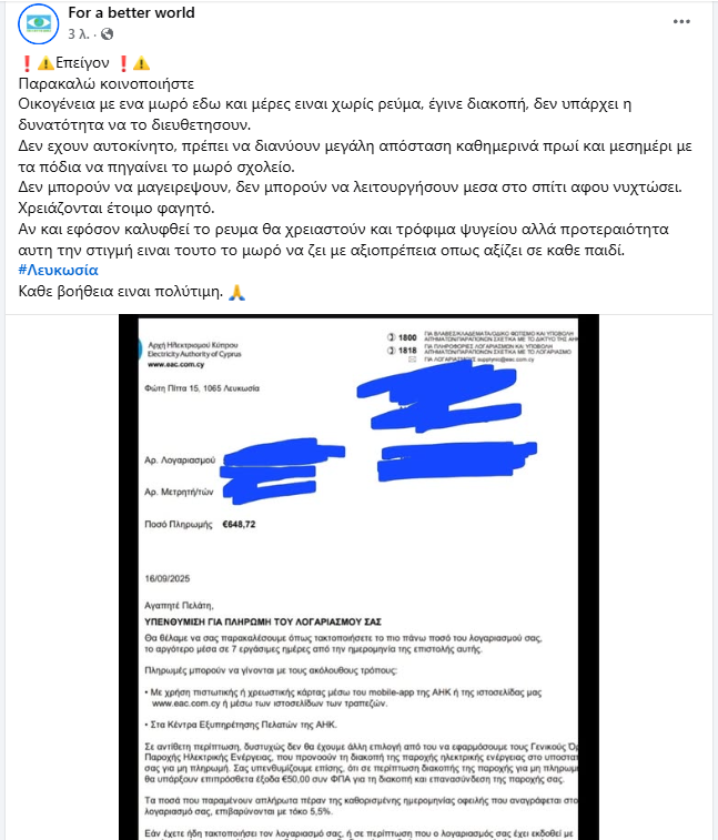 «Προτεραιότητα αυτή τη στιγμή είναι το μωρό να ζει με αξιοπρέπεια, όπως αξίζει σε κάθε παιδί», τονίζει η ομάδα, απευθύνοντας έκκληση για βοήθεια ώστε να επανασυνδεθεί άμεσα το ρεύμα και να καλυφθούν βασικές ανάγκες της οικογένειας.