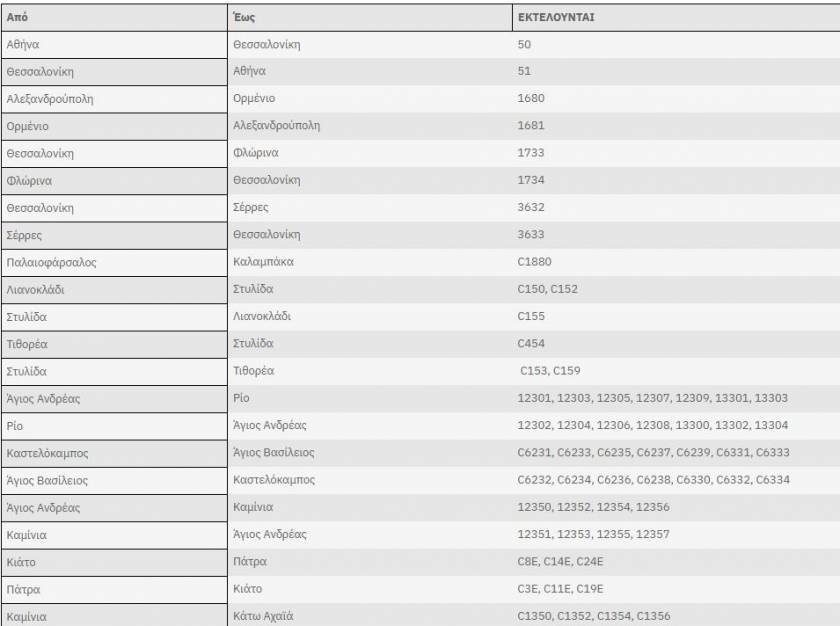 Ωστόσο, για την καλύτερη δυνατή εξυπηρέτηση του επιβατικού κοινού, η Hellenic Train, με τη συνδρομή και των σωματείων εργαζομένων που παρέχει το απαιτούμενο προσωπικό ασφαλείας, θα πραγματοποιήσει τα παρακάτω δρομολόγια: