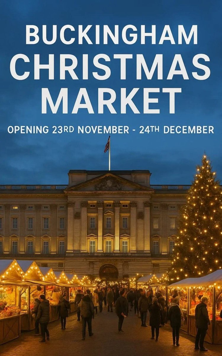 Μια φωτογραφία που έδειχνε μια υπέροχη χριστουγεννιάτικη αγορά, μπροστά από το παλάτι του Μπάκιγχαμ.