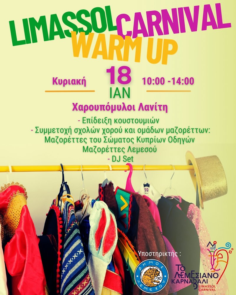 Το Limassol Carnival Warm Up απευθύνεται σε μικρούς και μεγάλους και αποτελεί την ιδανική αφορμή για να μπούμε όλοι μαζί στο πνεύμα της Αποκριάς, σε έναν από τους πιο εμβληματικούς χώρους της πόλης. Με χρώματα, μουσική, χορό και χαμόγελα, η Λεμεσός ζεσταίνει τις μηχανές της για το καρναβάλι που ξέρει να γιορτάζει καλύτερα από κάθε άλλη πόλη.