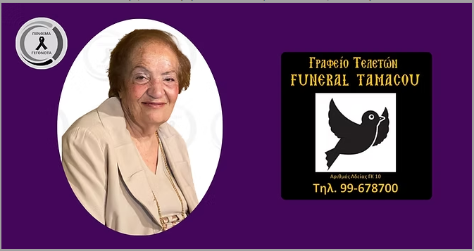 Παράκληση της οικογένειας είναι όπως αντί στεφάνων να γίνονται εισφορές για τον Αντικαρκινικό Σύνδεσμο Κύπρου.
