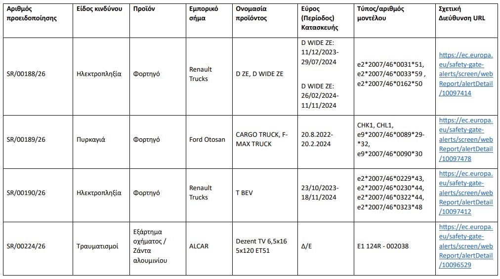 Περισσότερες λεπτομέρειες για τα επικίνδυνα προϊόντα μπορούν να ανακτηθούν μέσω της ιστοσελίδας του Safety Gate, χρησιμοποιώντας τον αριθμό προειδοποίησης κάθε προϊόντος.