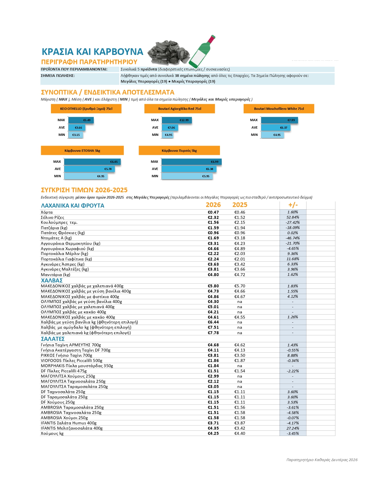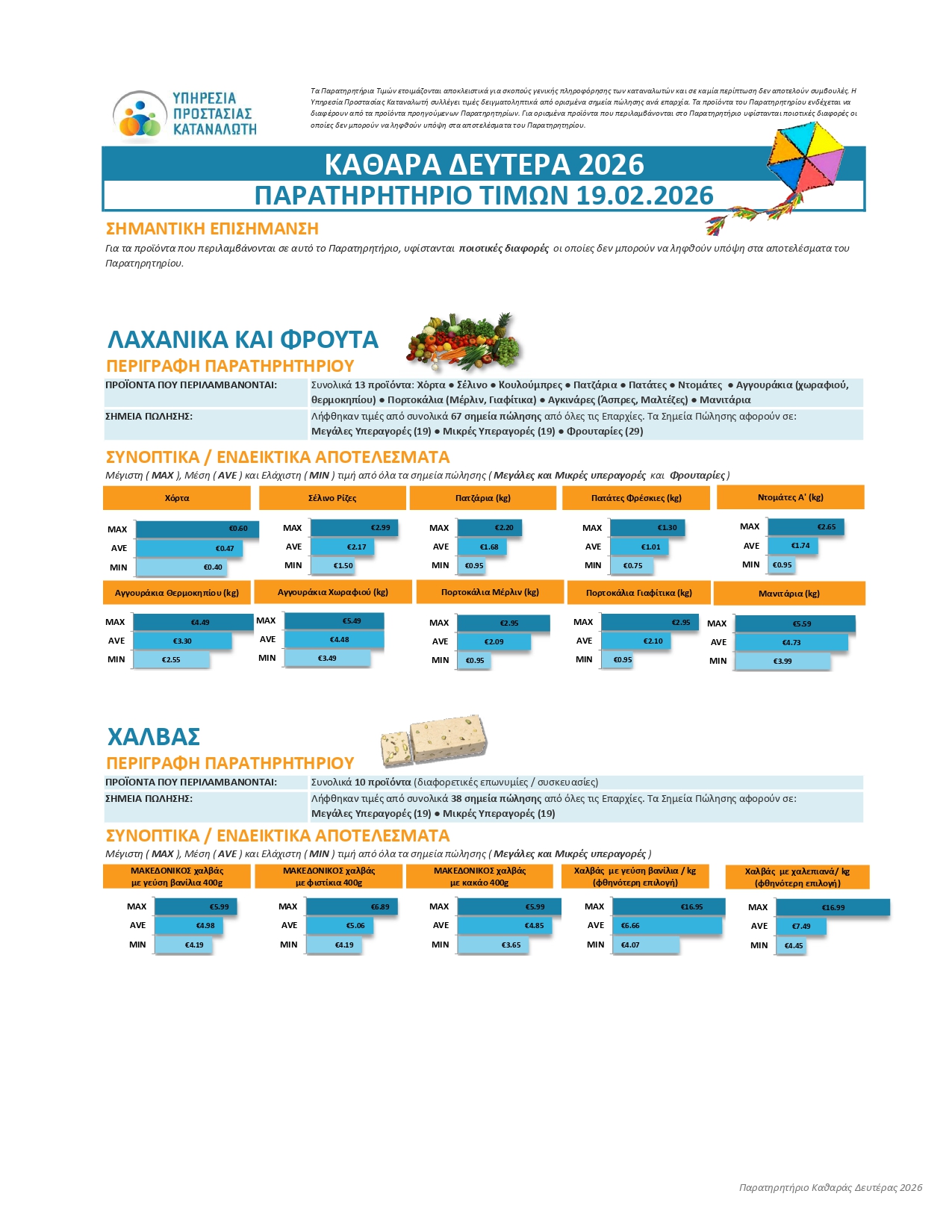 Η έρευνα αφορά συνολικά 67 σημεία πώλησης (μεγάλες και μικρές υπεραγορές και φρουταρίες), που δραστηριοποιούνται σε όλες τις επαρχίες και περιλαμβάνει προϊόντα τα οποία είναι τα πλέον διαδεδομένα για κατανάλωση τη συγκεκριμένη ημέρα (λαχανικά, σαλάτες, χαλβάς, θαλασσινά κλπ.).