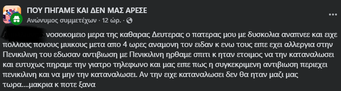 Κατά τη λήψη του ιατρικού ιστορικού, ο ασθενής φέρεται να ενημέρωσε ρητά το ιατρικό προσωπικό ότι παρουσιάζει αλλεργία στην πενικιλίνη. Παρ’ όλα αυτά, σύμφωνα με τα όσα καταγγέλλονται, του συνταγογραφήθηκε αντιβιοτική αγωγή που περιείχε πενικιλίνη.