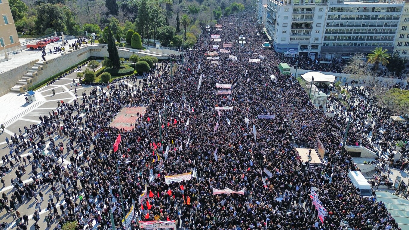 Χιλιάδες κόσμου διαδήλωσαν σήμερα στο κέντρο της Αθήνας, της Θεσσαλονίκης, της Λάρισας και πολλών ακόμα μεγάλων πόλεων της χώρας, στην «μαύρη» επέτειο της τραγωδίας των Τεμπών στις 28 Φεβρουαρίου.