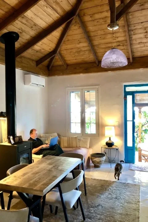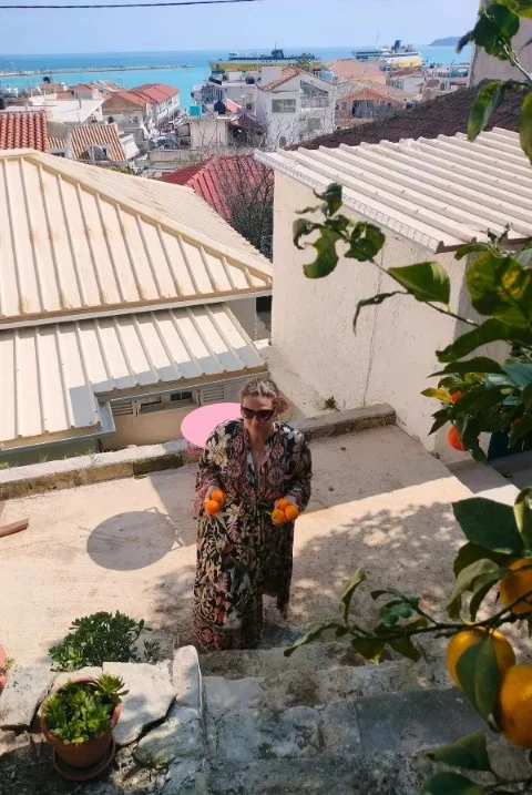 Στην μπροστινή αυλή μεγαλώνουν πορτοκαλιές, πίσω από το σπίτι υπάρχει ένας περιφραγμένος κήπος με ελαιόδεντρα και θέα στη θάλασσα. Εδώ και πέντε μήνες η Ελίνα και ο Γιόρμα μένουν εκεί και έχουν ανακαινίσει σχεδόν ολοκληρωτικά το σπίτι.