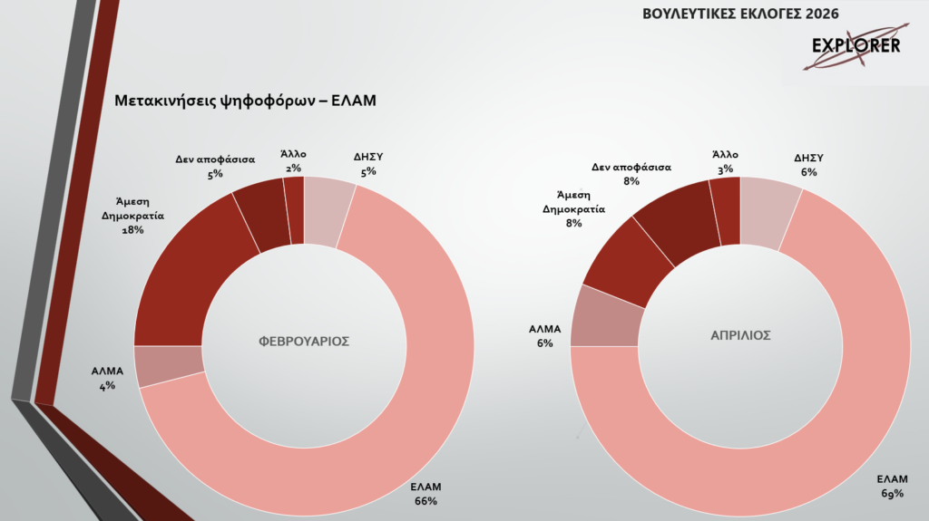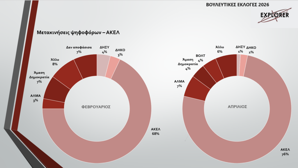 Η εκλογική ρευστότητα αποδίδεται κυρίως στις χαμηλές συσπειρώσεις και στις έντονες μετακινήσεις ψηφοφόρων. ΔΗΣΥ και ΔΗΚΟ καταγράφουν σημαντικές απώλειες προς ΑΛΜΑ και Άμεση Δημοκρατία, ενώ το ΕΛΑΜ ενισχύεται αλλά χάνει επίσης μέρος της δυναμικής του προς άλλους σχηματισμούς.