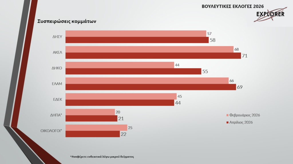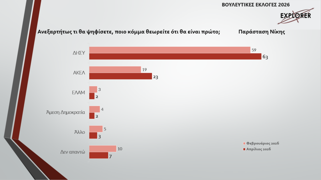Εξαιρετικά ρευστή παραμένει η πολιτική εικόνα στην Κύπρο ενόψει των βουλευτικών εκλογών της 24ης Μαΐου 2026, σύμφωνα με τη δεύτερη μεγάλη δημοσκόπηση του «Φ» που διενεργήθηκε από την εταιρεία EXPLORER.