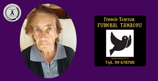 Η Εξόδιος Ακολουθία της, θα τελεστεί από τον Ιερό Ναό Αγίων Νόμωνος και Βηχιανού παλιά εκκλησία στα Ανάγεια, την Πέμπτη 16 Απριλίου 2026, ώρα 16:00.