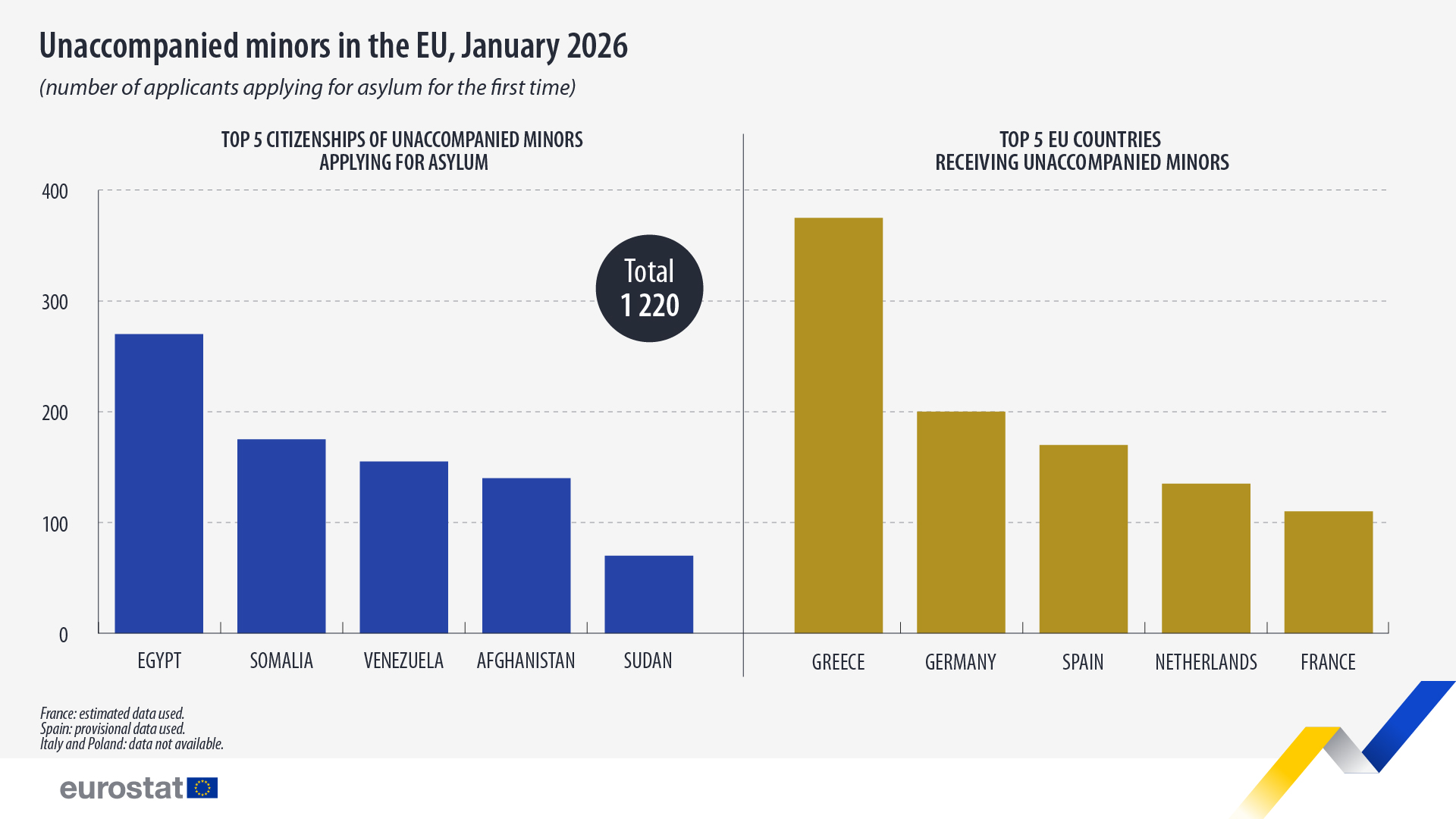Η ακτινογραφία των στοιχείων δείχνει ότι η Ελλάδα «χτυπά κόκκινο» με 46,7 αιτούντες ανά 100.000 κατοίκους, όμως η Κύπρος παραμένει σταθερά στην κορυφή της σχετικής λίστας αναλογικά με τον πληθυσμό της. Δεν είναι πλέον μόνο οι Βενεζουελάνοι (7.300) και οι Αφγανοί (4.790) που κυριαρχούν στις ροές προς την ΕΕ, η αυξανόμενη πίεση από την Αίγυπτο και τη Σομαλία, ιδιαίτερα με την παρουσία 1.220 ασυνόδευτων ανηλίκων τον Ιανουάριο, δημιουργεί μια νέα, εξαιρετικά ευάλωτη πραγματικότητα στις κυπριακές δομές υποδοχής.