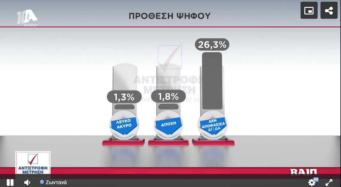Παράλληλα, η αποχή καταγράφεται στο 1,8%, ενώ το λευκό/άκυρο στο 1,3%, ποσοστά που προς το παρόν παραμένουν χαμηλά, αλλά ενδέχεται να διαφοροποιηθούν όσο πλησιάζει η εκλογική διαδικασία. Το μεγάλο βάρος, πάντως, παραμένει στους πολίτες που δηλώνουν ότι δεν έχουν ακόμη αποφασίσει.