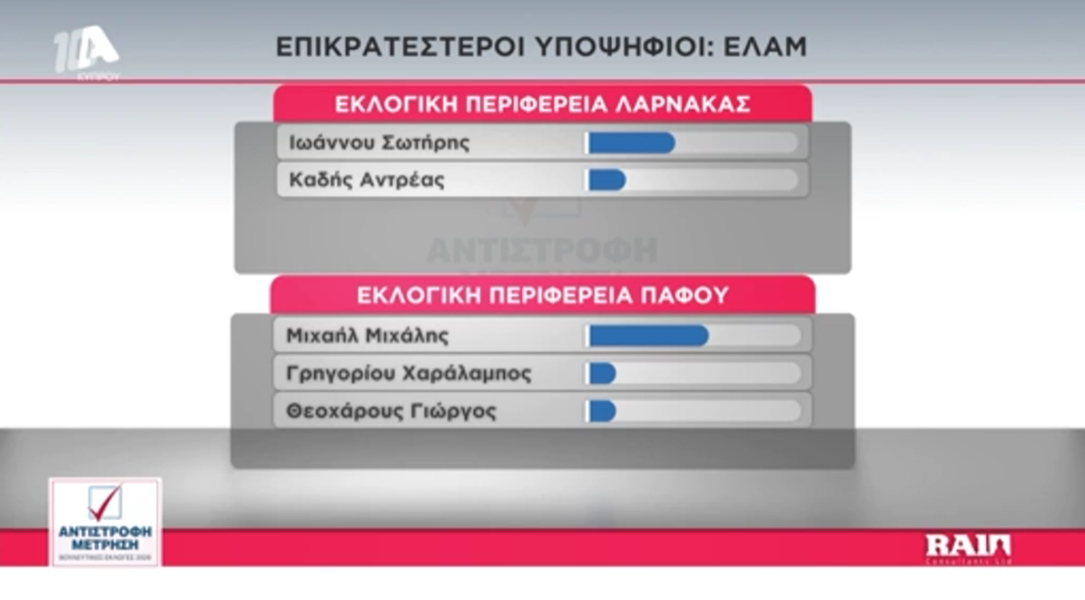 Στη Λάρνακα και την Πάφο διακρίνονται επίσης συγκεκριμένα πρόσωπα που αποκτούν προβάδισμα, χωρίς όμως να δημιουργούνται μεγάλες αποστάσεις, στοιχείο που δείχνει ρευστότητα μέχρι και την τελική κάλπη.