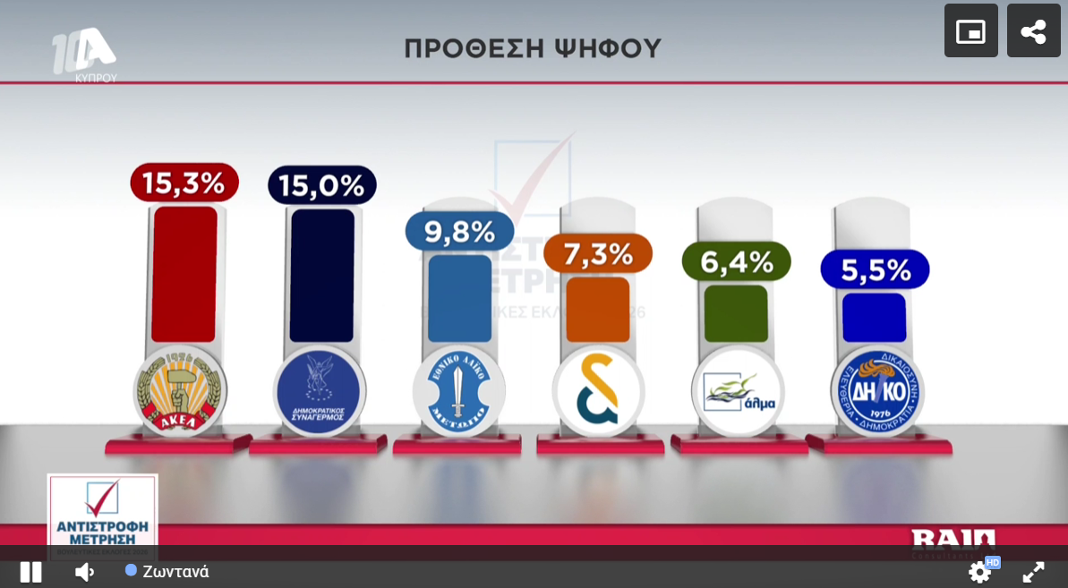 Αντίθετα, το ΔΗΚΟ, με 5,5%, εμφανίζεται σε πιο χαμηλά επίπεδα σε σχέση με την παραδοσιακή του επιρροή, χωρίς όμως να παύει να αποτελεί κρίσιμο παράγοντα για τη διαμόρφωση πιθανών συνεργασιών, καθώς η κοινοβουλευτική του παρουσία μπορεί να αποδειχθεί καθοριστική για την επίτευξη πλειοψηφιών.