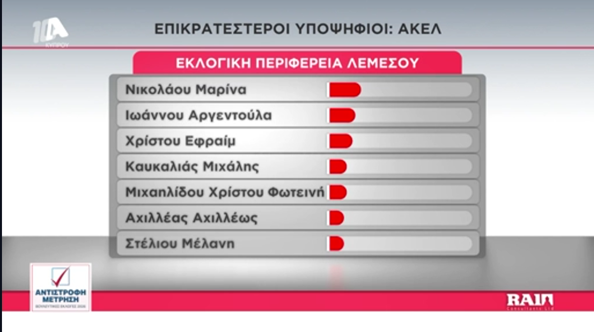 Η καταγραφή των επικρατέστερων υποψηφίων του ΑΚΕΛ ανά εκλογική περιφέρεια προσθέτει μια πιο «προσωποκεντρική» διάσταση στη δημοσκόπηση, αναδεικνύοντας όχι μόνο τη δύναμη του κόμματος αλλά και τις εσωτερικές ισορροπίες.