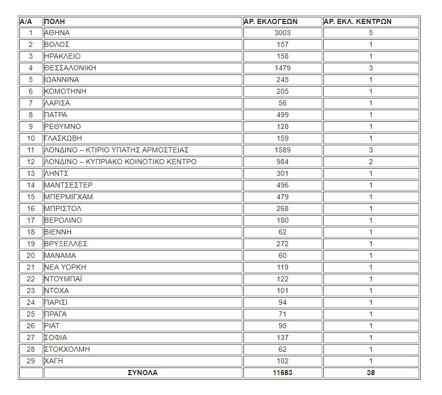 Την Πέμπτη 11/1 ανακοινώθηκαν τα εκλογικά κέντρα για τους ψηφοφόρους του εξωτερικού από τον Γενικό Έφορο Εκλογών.