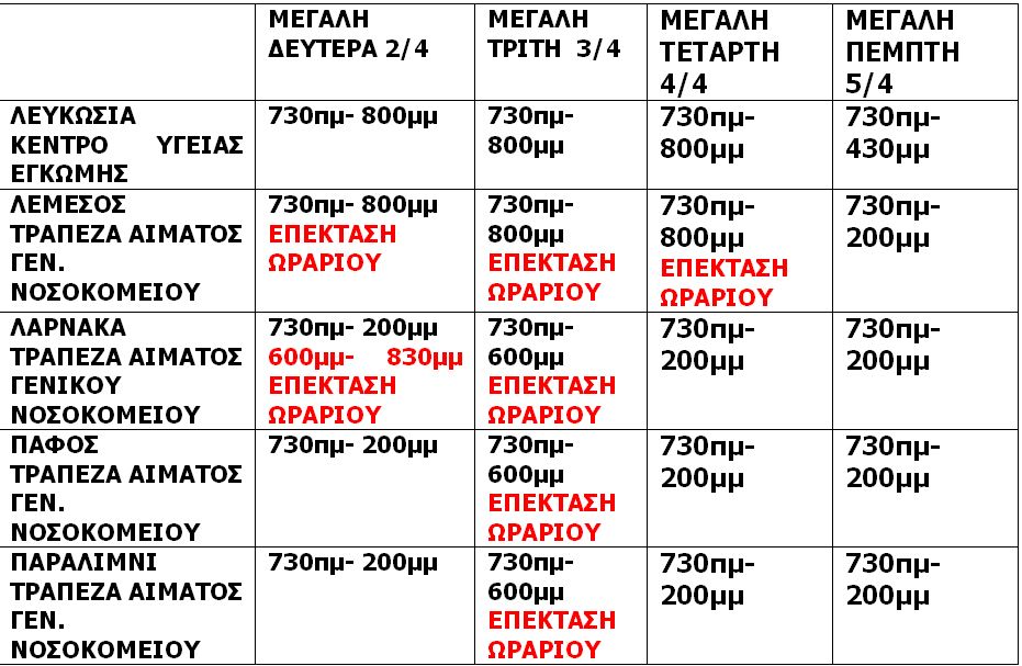 Για την επίτευξη επάρκειας αίματος και για να καταφέρουμε να μεταγγίσουμε όλους τους ασθενείς μας, είναι απαραίτητη η προσέλευση πέραν των 1,500 αιμοδοτών, από σήμερα Δευτέρα, 2 Απριλίου, μέχρι και τη Μεγάλη Πέμπτη, 5 Απριλίου 2018.