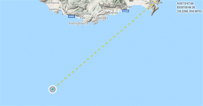 Το Oruc Reis κινείται με 7 κόμβους στο νοτιοδυτικό μέρος της δεσμευμένης με την παράνομη NAVTEX περιοχή, όπου έφτασε με κλειστούς πομπούς ώστε να μην φαίνεται το στίγμα του σε ειδικές εφαρμογές όπως το marinetraffic.