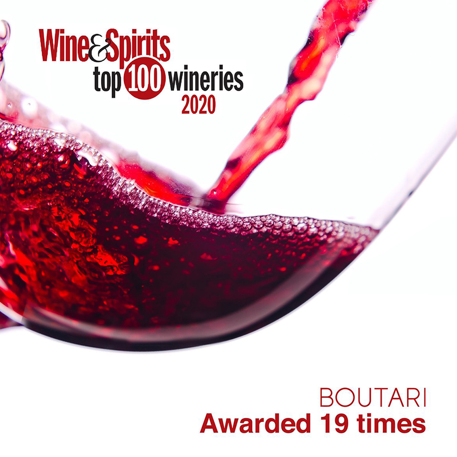Τη σπουδαιότερη και τιμητικότερη διάκριση στην ιστορία της συνεχίζει να διατηρεί η οινοποιία Μπουτάρη, η οποία και πάλι κατατάσσεται ανάμεσα στις 6 καλύτερες οινοποιίες παγκοσμίως, σύμφωνα με το αμερικάνικο κλαδικό περιοδικό “Wine & Spirits”. Το περιοδικό πρόσφατα τής απένειμε τον τίτλο «Οινοποιείο της Χρονιάς» για το 2020, έναν τίτλο ο οποίος της έχει αποδοθεί 19 συνολικά φορές τα τελευταία 33 χρόνια.