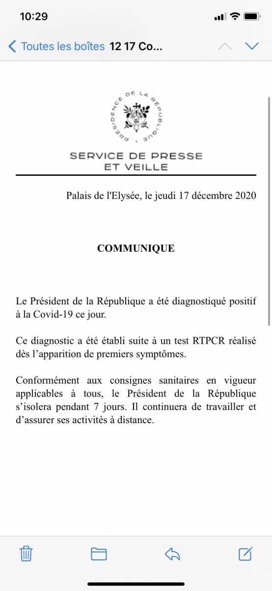Θετικός στον κορωνοϊό διαγνώστηκε, σύμφωνα με ανακοίνωση του Ελιζέ  ο Γάλλος  πρόεδρος Εμανουέλ Μακρόν.