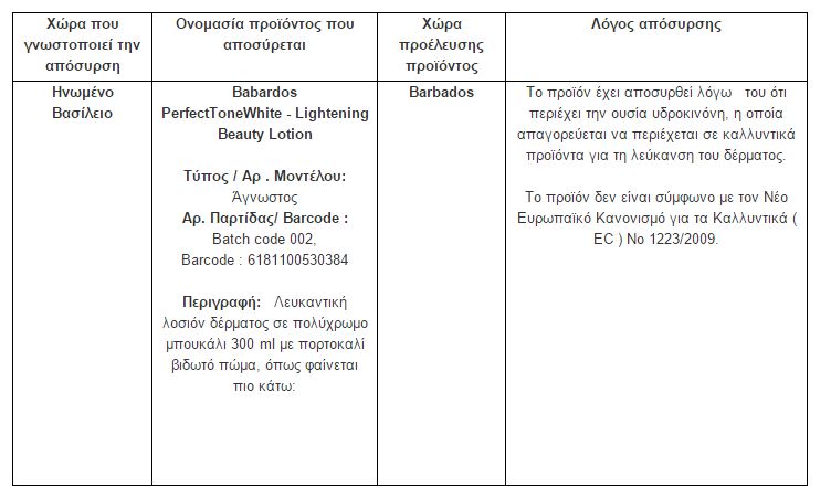 Για το πιο κατω προϊόν, δεν υπάρχουν σαφείς πληροφορίες αναφορικά με τις χώρες εξαγωγής του. Για τον λόγο αυτό, οι Φαρμακευτικές Υπηρεσίες διεξάγουν έρευνα για τον εντοπισμό του πιο πάνω προϊόντος στην αγορά και προτρέπουν το κοινό σε περίπτωση που τυχόν έχει στην κατοχή του το εν λόγω προϊόν να διακόψει τη χρήση του ή σε περίπτωση που εντοπίσει το προϊόν αυτό, να επικοινωνήσει με τις Φαρμακευτικές Υπηρεσίες, στα τηλέφωνα 22608606 και 22608668.