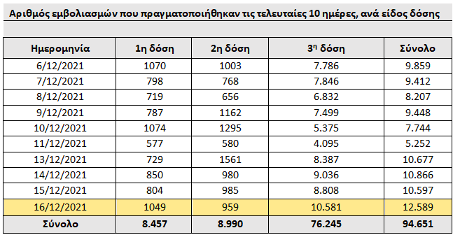 Χθες 16 Δεκεμβρίου, διενεργήθηκαν 12,589 εμβολιασμοί, αριθμός ρεκόρ για το δεύτερο εξάμηνο του 2021.