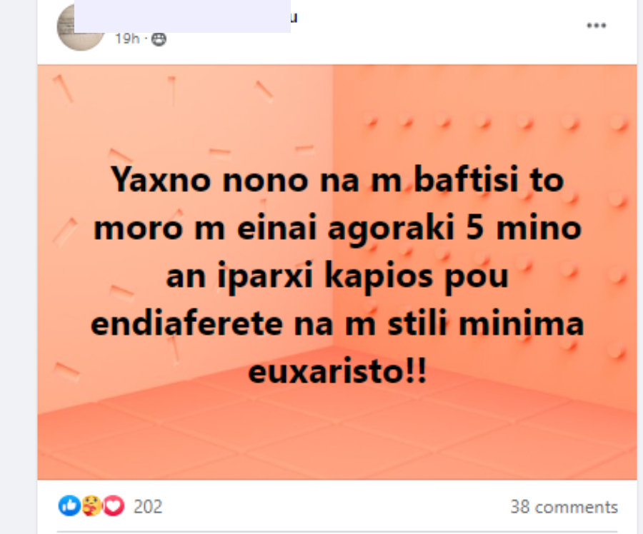 Μια διαφορετική αγγελία, με μια μητέρα να ζητά νονό-νονά για το 5μηνών γιό της. Είναι απο τις εξαιρετικά σπάνιες αναρτήσεις που θα βρει κανείς στα social media.