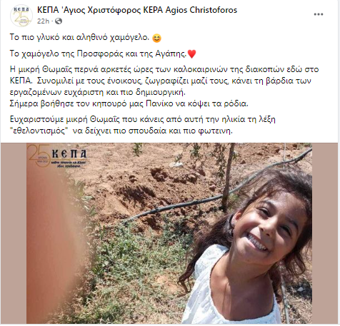 Όμορφη κίνηση από τη μικρή Θωμαΐς, η οποία περνά αρκετές ώρες των καλοκαιρινών της διακοπών εδώ στο ΚΕΠΑ Αγιος Χριστόφορος.