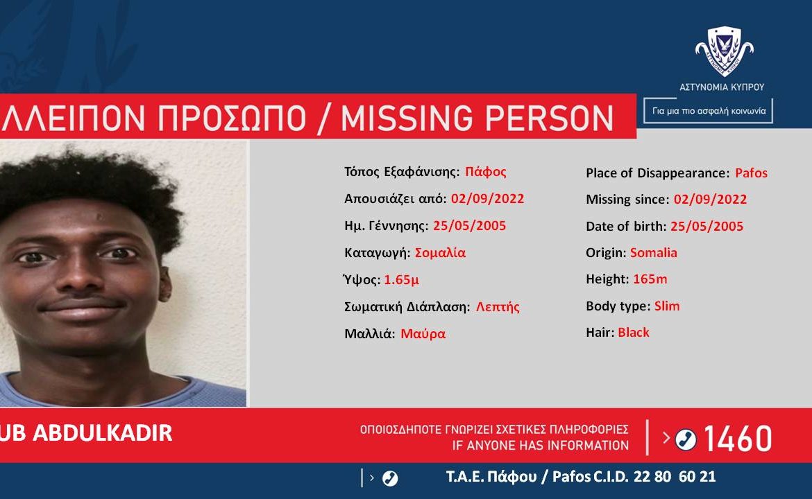 Παρακαλείται οποιοσδήποτε γνωρίζει οτιδήποτε που μπορεί να βοηθήσει στον εντοπισμό του, να επικοινωνήσει με το ΤΑΕ Πάφου στο τηλέφωνο 26806021 ή με τον πλησιέστερο Αστυνομικό Σταθμό, ή με τη Γραμμή του Πολίτη στον τηλεφωνικό αριθμό 1460.