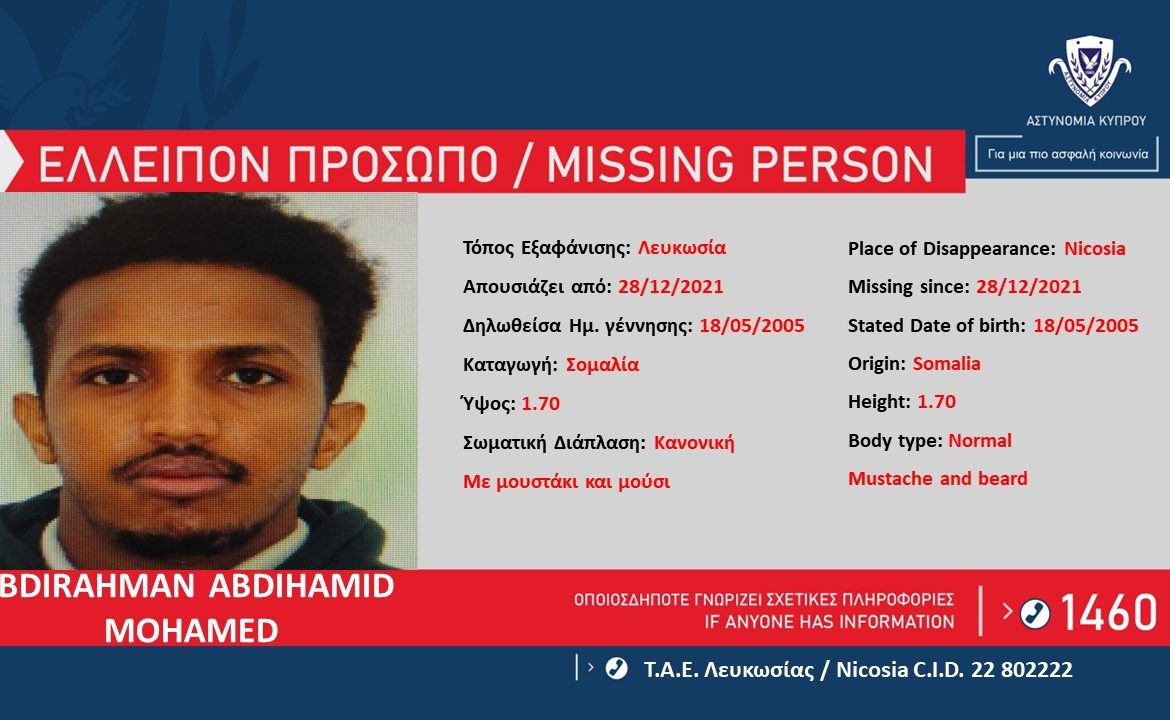 Παρακαλείται οποιοσδήποτε γνωρίζει οτιδήποτε που μπορεί να βοηθήσει στον εντοπισμό τους, να επικοινωνήσει με το ΤΑΕ Λευκωσίας, στον αριθμό τηλεφώνου 22-802222 ή με τη Γραμμή του Πολίτη 1460 ή με τον πλησιέστερο Αστυνομικό Σταθμό.