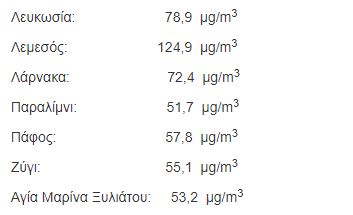 Ενημερωτικά, οι τελευταίες ωριαίες τιμές συγκέντρωσης σκόνης που μετρήθηκαν στις 7:00 π.μ. στις ακόλουθες περιοχές ήταν: