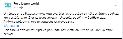 Μέσα από την ομάδα κάνει έκκληση για τρόφιμα κυρίως σε κονσέρβα , λόγω του ότι δεν υπάρχει ηλεκτρικό ρεύμα.