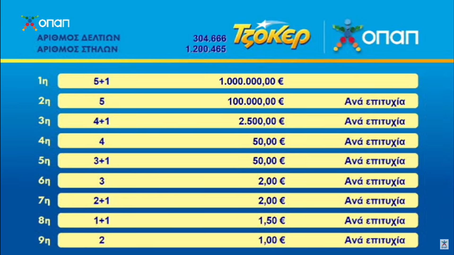 ΤΖΟΚΕΡ: Αυτοί είναι οι τυχεροί αριθμοί για το 1 εκατ. ευρώ - Δες αν κέρδισες