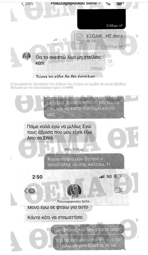 Διαφαίνεται δε από τα μηνύματα πως υπήρχε οικονομική στενότητα του γραφείου που διατηρεί ο Απόστολος Λύτρας και για υποχρεώσεις που πρέπει να πληρωθούν.