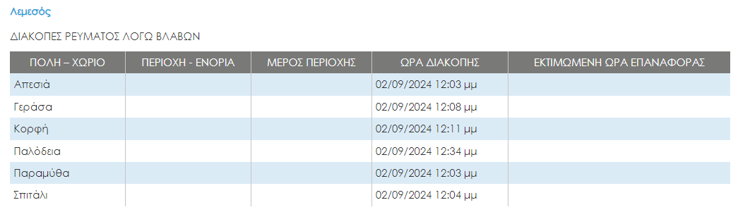 Μιλώντας στο ThemaOnline, η εκπρόσωπος τύπου της ΑΗΚ, Χριστίνα Παπαδοπούλου, ανέφερε ότι πρόκειται για βλάβες μέσης τάσης και συνεργεία της Αρχής βρίσκονται στο σημείο για αποκατάσταση των βλαβών.