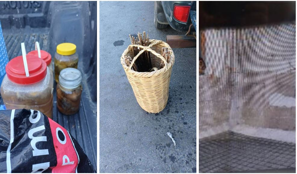 Εντοπίστηκε επίσης κεφάλι αγρινού, ποσότητα 29 κιλών κατεψυγμένου κρέατος, ξόβεργα καθώς και διάφορα άλλα τεκμήρια που φαίνεται να σχετίζονται με τη λαθροθηρία.