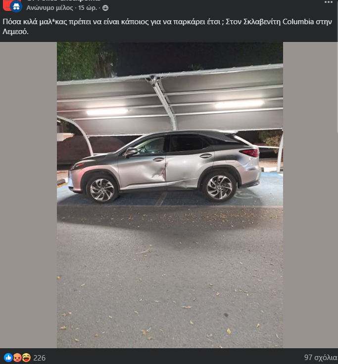 Κάποιοι χρήστες περιέγραψαν το περιστατικό ως «καθρέφτη της κυπριακής οδικής νοοτροπίας», ενώ άλλοι πέρασαν σε ακόμη πιο καυστικούς χαρακτηρισμούς, με έναν να γράφει: «Είμαστε η πιο άχρηστη φυλή στον κόσμο, καμπανόγαρος ο Κύπριος – δεν καταλαβαίνει τίποτα bisis Cyprus». Ένας άλλος χρήστης, δεν άφησε να περάσει απαρατήρητο το χτύπημα στην πόρτα του οχήματος: «Φαίνεται από την πόρτα πόσα κιλά ανάπηρος είναι», προκαλώντας νέο κύμα αντιπαράθεσης.