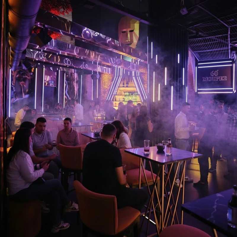 Με σύγχρονη αισθητική, έντονη ενέργεια και έμφαση στη συνολική εμπειρία, το 60 Μοίρες φιλοδοξεί να γίνει σημείο αναφοράς για τη νυχτερινή ζωή της Λάρνακας. Ένας χώρος όπου η έξοδος δεν περιορίζεται στο ποτό, αλλά μετατρέπεται σε ολοκληρωμένη βραδινή εμπειρία μέχρι αργά.